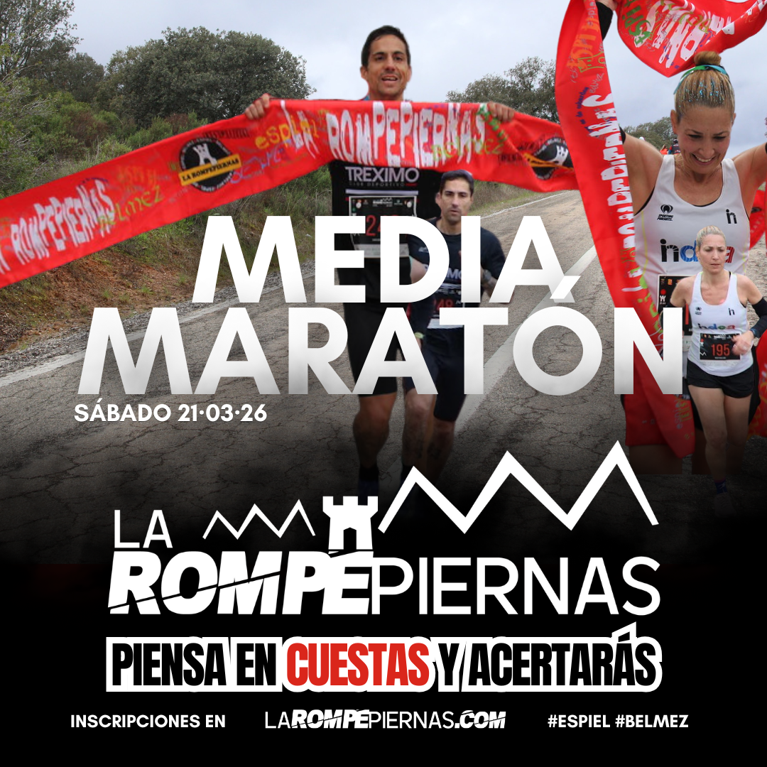 🔥❤️ La Media Maratón que te marcará en las piernas y en el corazón La Rompepiernas Belmez-Espiel 2026 👟 MEDIA MARATÓN - Dureza y belleza a partes iguales En sus 21.4 kilómetros tus piernas desafiarán más de 300 metros de desnivel de continuos sube-bajas por la carretera que une las dos localidades rodeadas de las sierras y dehesas del Valle del Guadiato. 📍 Salida en Belmez y meta en Espiel 📆 Sábado 21 de marzo 2026 📝 Inscripciones en https://larompepiernas.com 💬 PIENSA EN CUESTAS Y ACERTARÁS Ayuntamiento De Espiel Ayuntamiento de Belmez Mancomunidad de Municipios Valle del Guadiato Diputación de Córdoba Atletismo La Rompepiernas Atletismo Espiel Espiel #LaRompepiernas #Belmez #Espiel #Running #ValleDelGuadiato #Guadiato #Carreras #Maraton #MediaMaraton #Senderismo